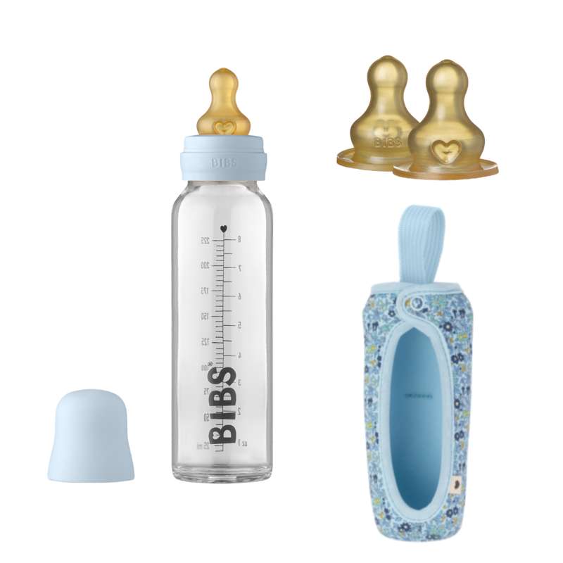 BIBS Bottle - Sutteflaskesæt - Glas - Latex/Medium Flow/Rund - 240 ml. - Baby Blue