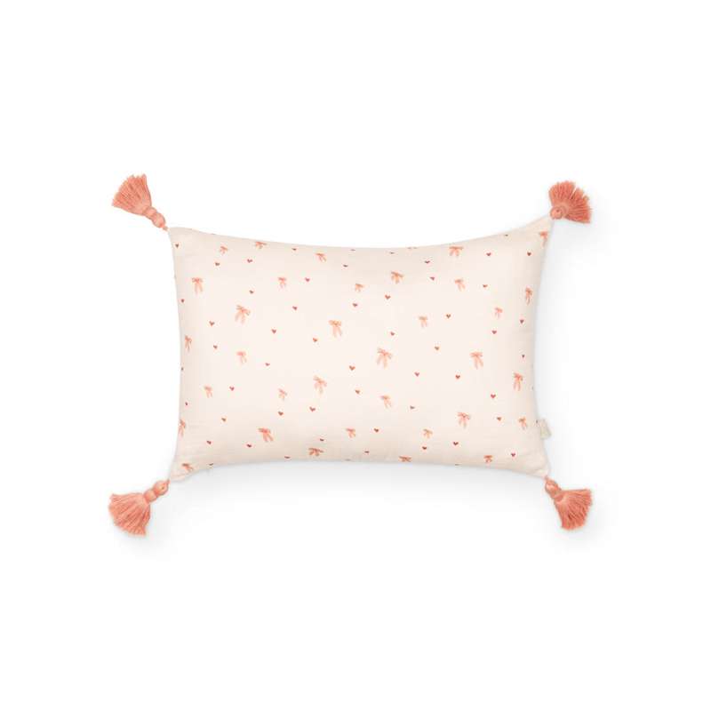 Dekorativ pude i blød musselin af 100 % økologisk bomuld, prydet med fine kvaster, der...