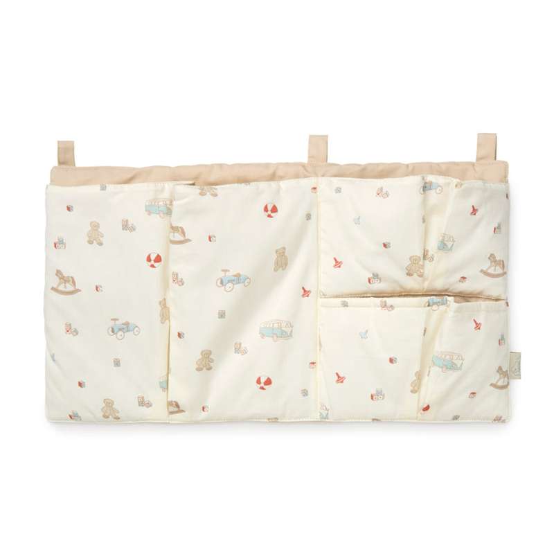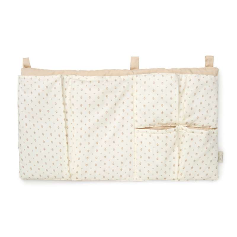 Praktisk og pæn Sengelomme til at hænge på tremmesengen, så sutter, bøger, nusseklude og andre...