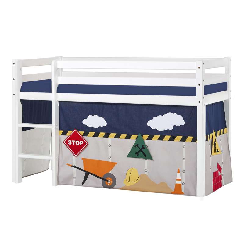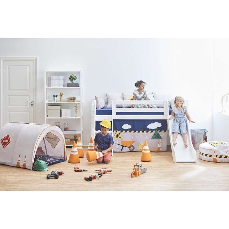Hoppekids ECO Dream - Halvhøj Seng m. CONSTRUCTION Forhæng - 70x160 cm. - Ikke Delbar