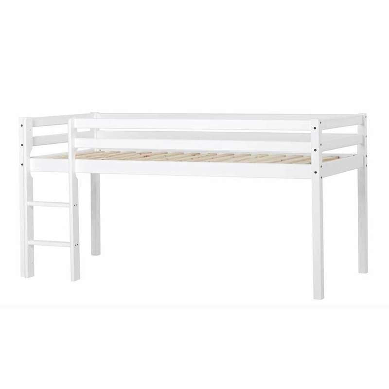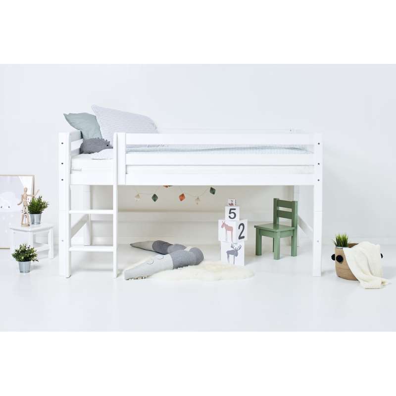 Hoppekids ECO Luxury - Halvhøj Seng m. Ryglæn - Skrå Stige - Flere Størrelser - Hvid