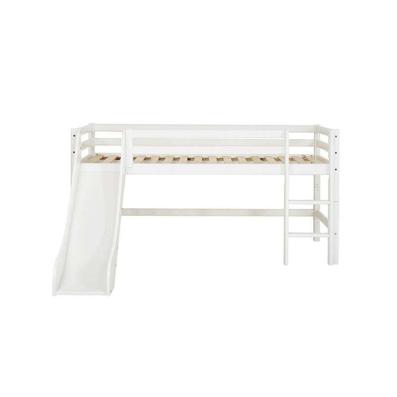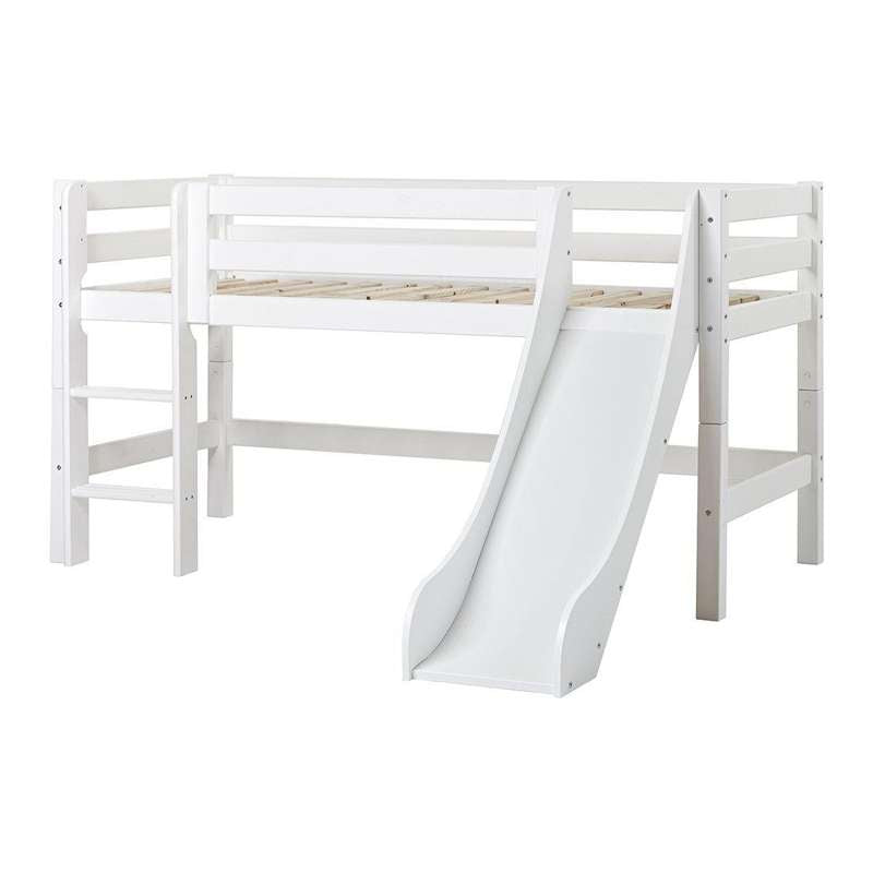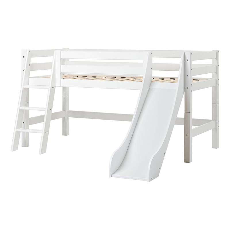 Hoppekids ECO Luxury - Halvhøj Seng m. Rutsjebane - 90x200 cm. - Skrå Stige - Fleksibel Indlægsbund - Hvid
