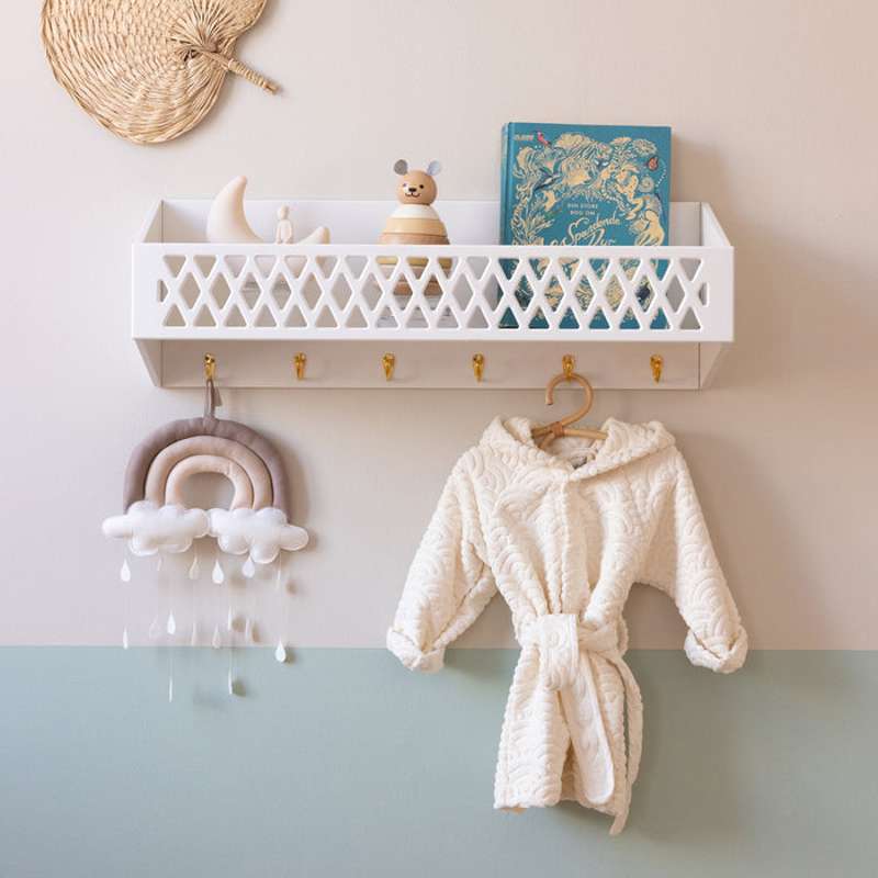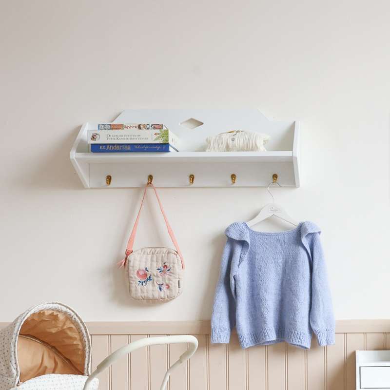 Smart lille hylde med 5 knager fra Hoppekids i hvid. Nem at sætte op og...