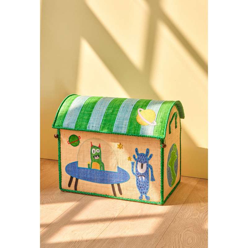 RICE Raffia Opbevaringshus - Fun Fair Theme - Stor - Blå/Grøn