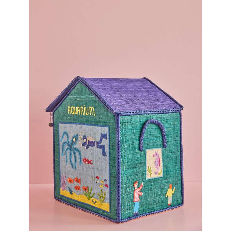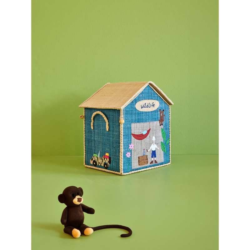 RICE Raffia Opbevaringshus - Fun Fair Theme - Lille - Blå/Grøn