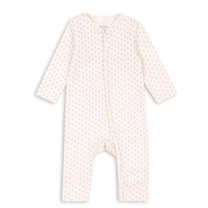 Blød heldragt i økologisk bomuld til nyfødte. Med trykknapåbning i fuld længde foran og ned...