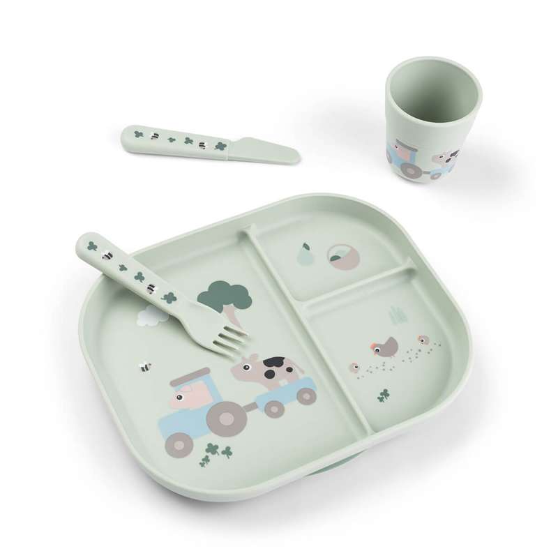Done by Deer Foodie Spisesæt m. Sugekop - Tiny Farm - Grøn