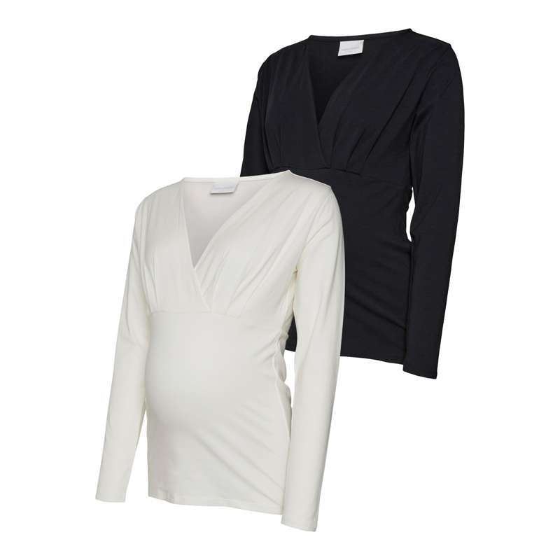 Mamalicious MLEMMA Graviditetstoppe m. Lange Ærmer - 2-pak - Sort/Hvid