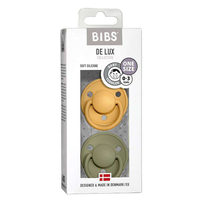 BIBS De Lux Sut - 2-Pak - Onesize - Silikone - Honey Bee/Olive