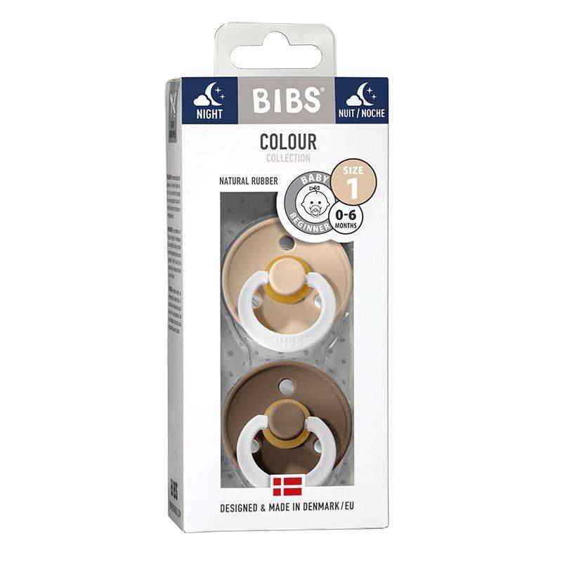 BIBS Rund Colour Sut - 2-Pak - Str. 1 - Naturgummi - GLOW - Vanilla/Dark Oak