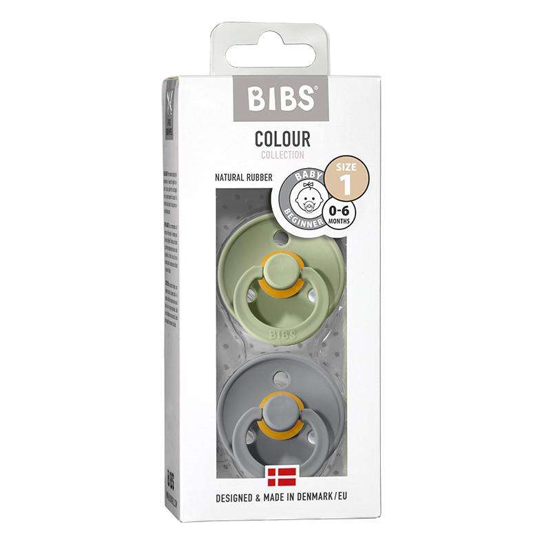 BIBS Rund Colour Sut - 2-Pak - Str. 1 - Naturgummi - Sage/Cloud