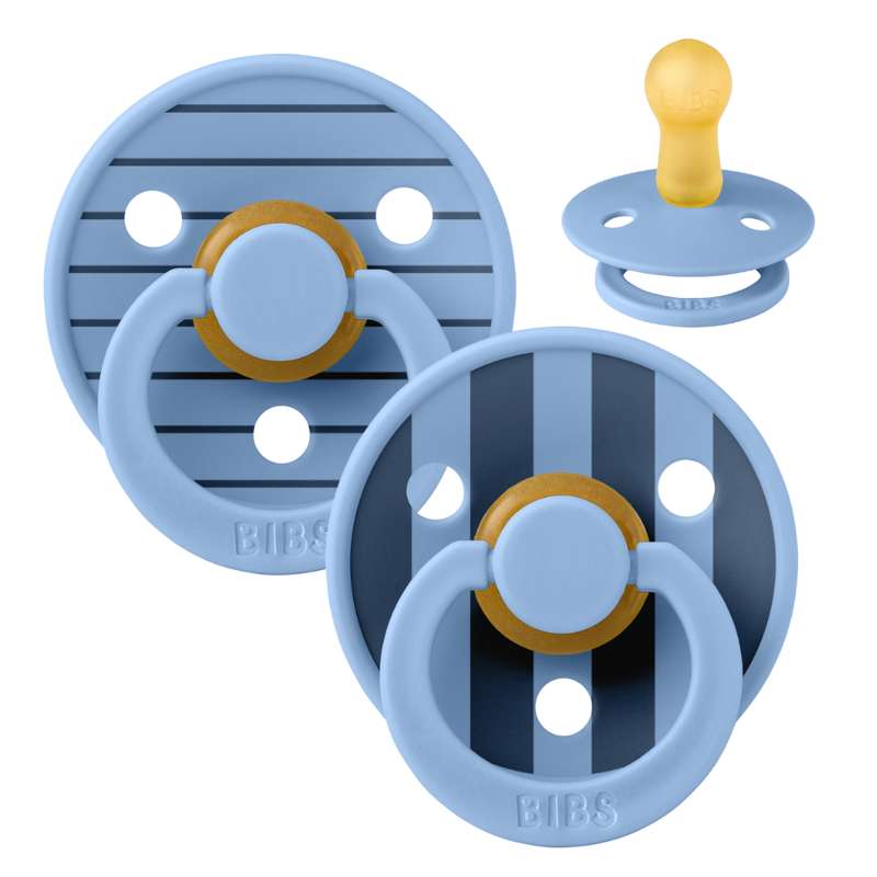 BIBS Rund Colour Sut - 2-Pak - Str. 2 - Naturgummi - Studio - Pin - Sky Blue/Sky Blue