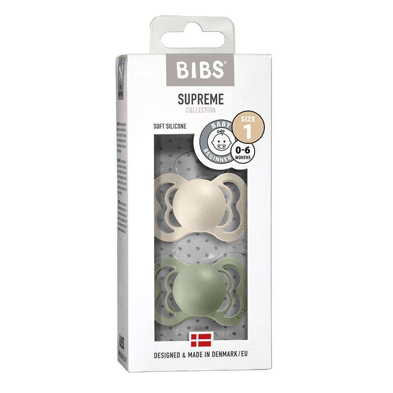BIBS Supreme Sut - 2-Pak - Str. 1 - Silikone - Ivory/Sage
