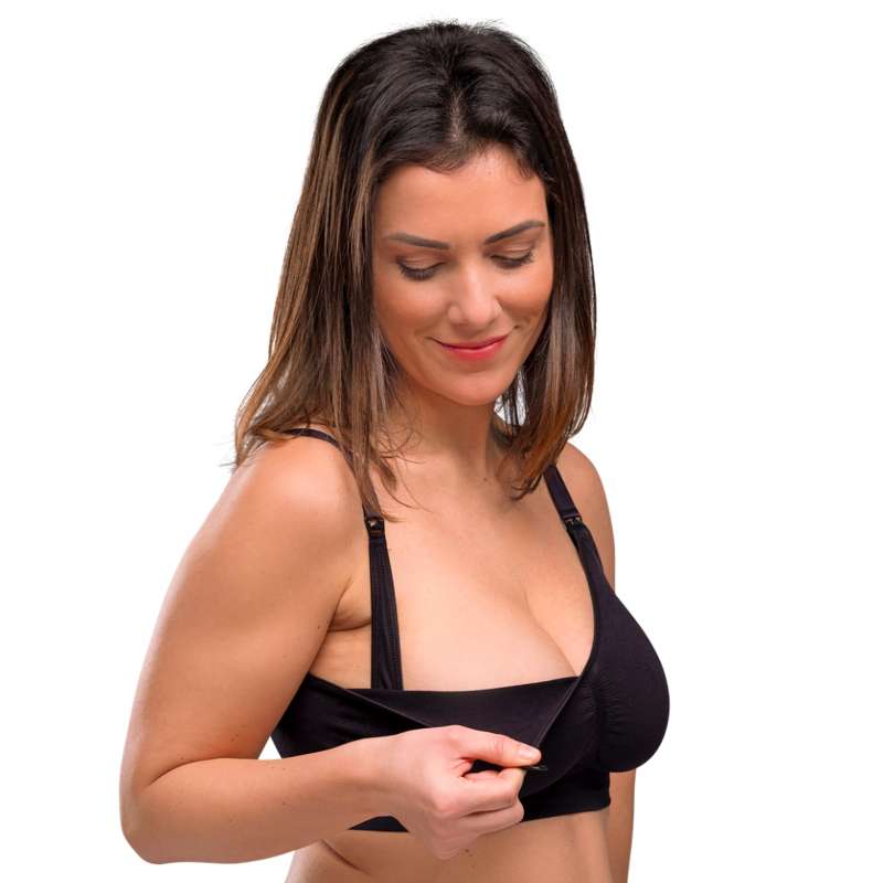 Ingen stive bøjler eller sømme, kan bruges både om dagen og om natten og kan åbnes med en hånd for simpel amning. Den er justerbar med medfølgende bh-forlænger, og øger både komfort og støtte. Anbefalet af jordmødre, sidder perfekt til tætsiddende tøj, og har et bredt brystbånd for ekstra støtte.