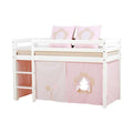 Hoppekids ECO Dream halvhøj seng er en genial seng til lidt større børn. Denne seng giver mere gulvplads til at lege på, og med forhæng omkring, kan den også være en hyggelig hule. Juniorsengen er svanemærket, hvilket er din sikkerhed for, at sengen overholder alle gældende EU regler.