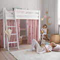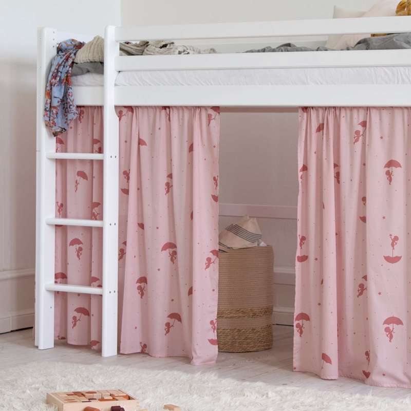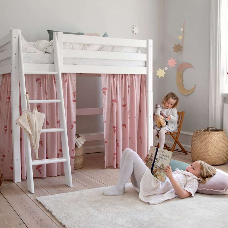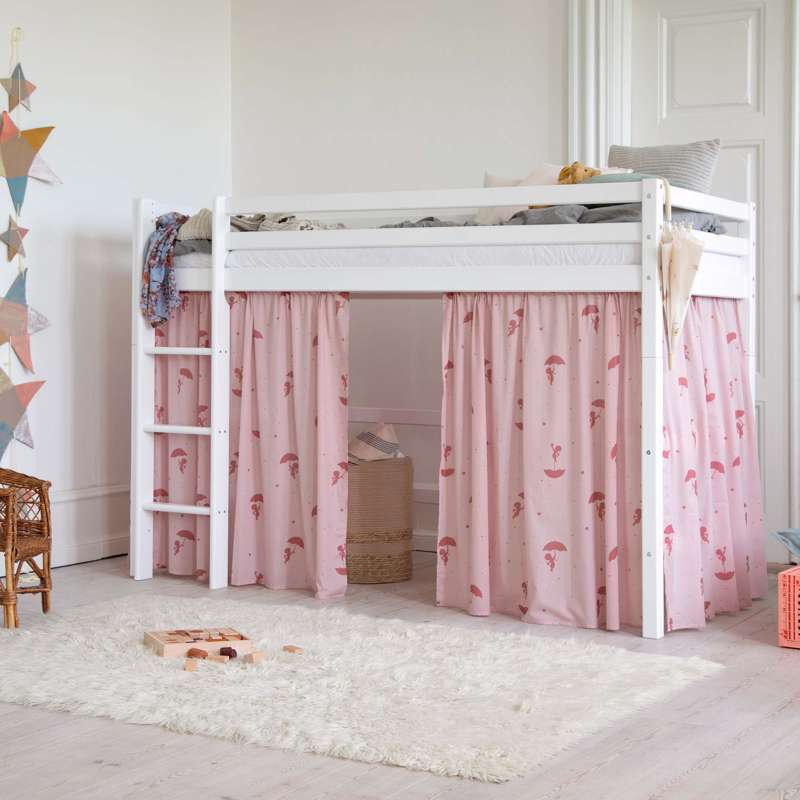 Forhænget skaber også en hyggelig hule under den mellemhøje seng, som er perfekt til leg eller når dit barn har brug for en lille pause fra resten af verden. Dekorér eventuelt hulen med en madras, tæpper, puder, lyskæder og andre hyggelige sager.