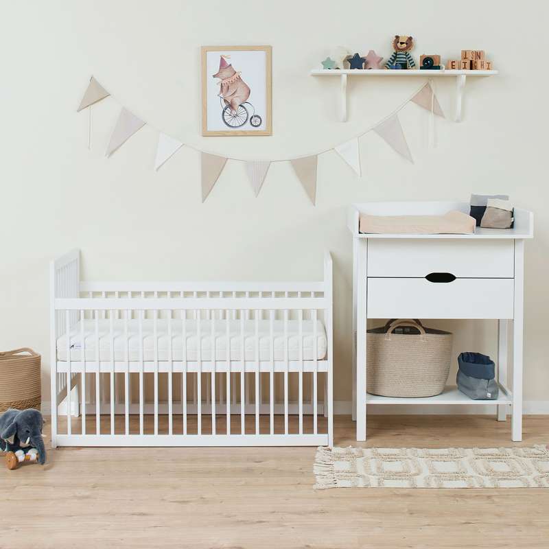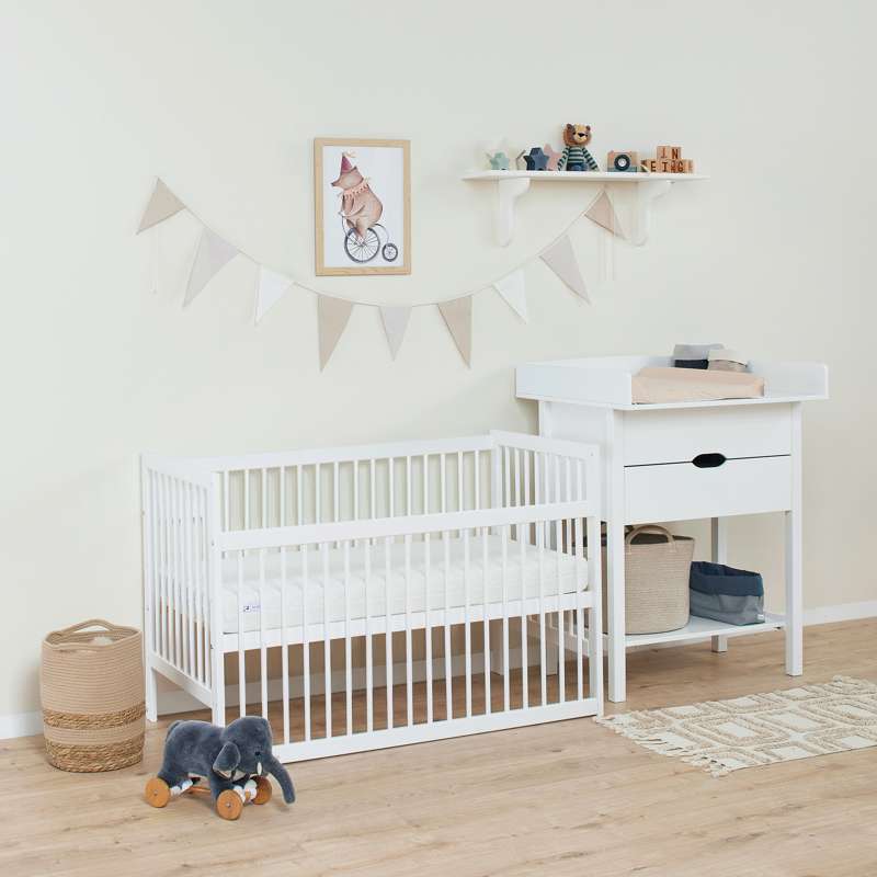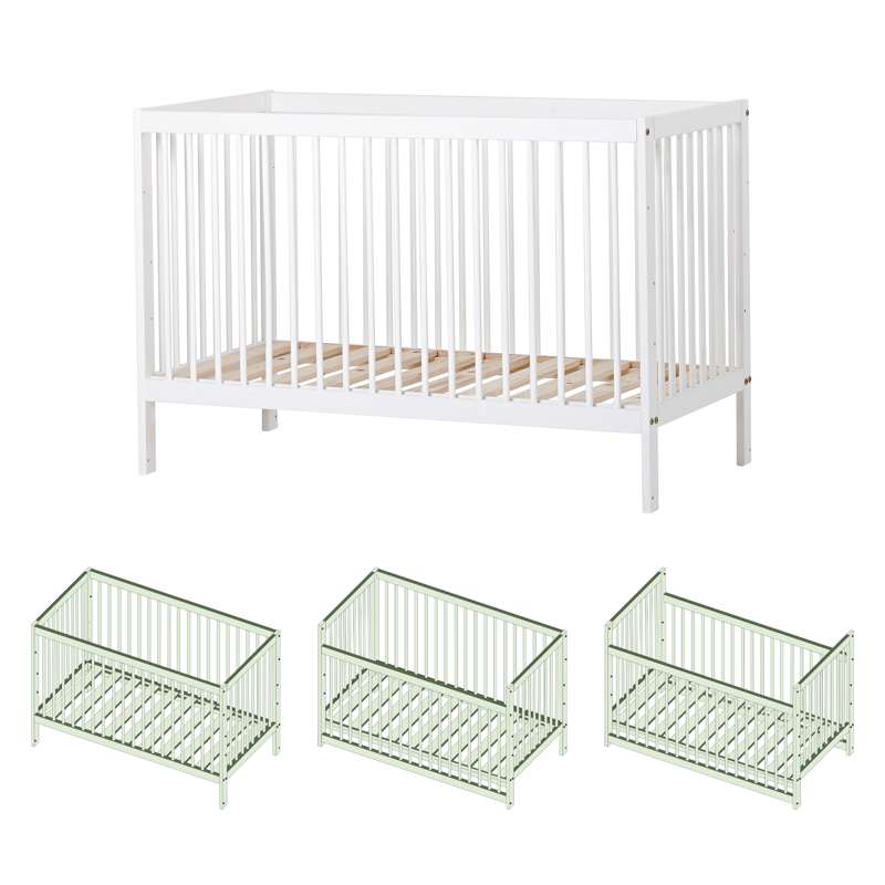 Hoppekids IDA-MARIE - Babyseng m. Justérbar Højde og Sidepanel - Hvid