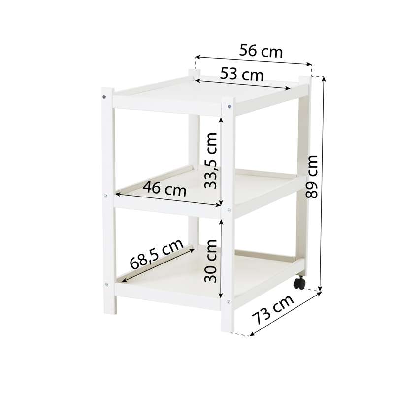 Smart puslereol fra Hoppekids. Enkelt og stabil, men samtidig let at flytte rundt pga. de to hjul. Reolen er overfladebehandlet med miljøvenlig, vandbaseret lak, uden skadelige og unødige kemikalier.