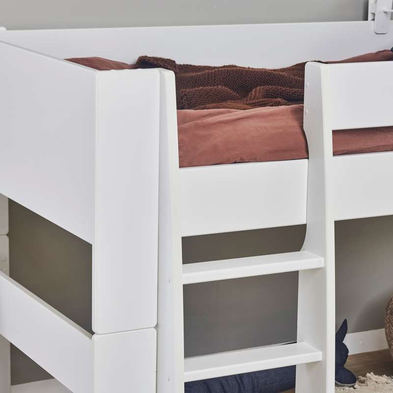 Den halvhøje seng er konstrueret af MDF, som sikrer en solid og pålidelig base, der vil vare i årevis. Den glatte overflade er let at rengøre og opretholde, hvilket gør det til en ideel løsning for forældre, der værdsætter både stil og funktionalitet. Sengen er designet med både sikkerhed og æstetik i tankerne og er en god løsning til børneværelser med begrænset plads, da den udnytter rummets højde. Med en lavere højde end den traditionelle højseng, tilbyder den halvhøje seng en optimal balance mellem pladsbesparelse og funktionalitet.