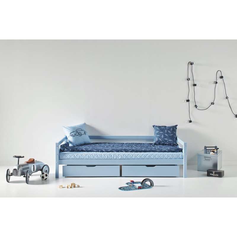 Det quiltet betræk fra Hoppekids er lavet af 100 % Oeko-Tex- certificeret bomuld og kan fås i et væld af smukke farver. Farverne passer til de forskellige universer fra Hoppekids, dette betræk kommer i en flot lys blå farve. Det quiltet madrasbetræk fås i to størrelser og passer til en madrashøjde på 9 cm. Betrækket forlænger madrassens levetid og Hoppekids anbefaler altid at bruge et madrasbetræk. Betrækket kan bruges til både koldskum og skum madrasser og der er praktiske lynlåse på tre sider for at betrækket let kan tages af og på. Skal madrassen bruges til at sove på anbefaler vi at der også bruges et lagen.