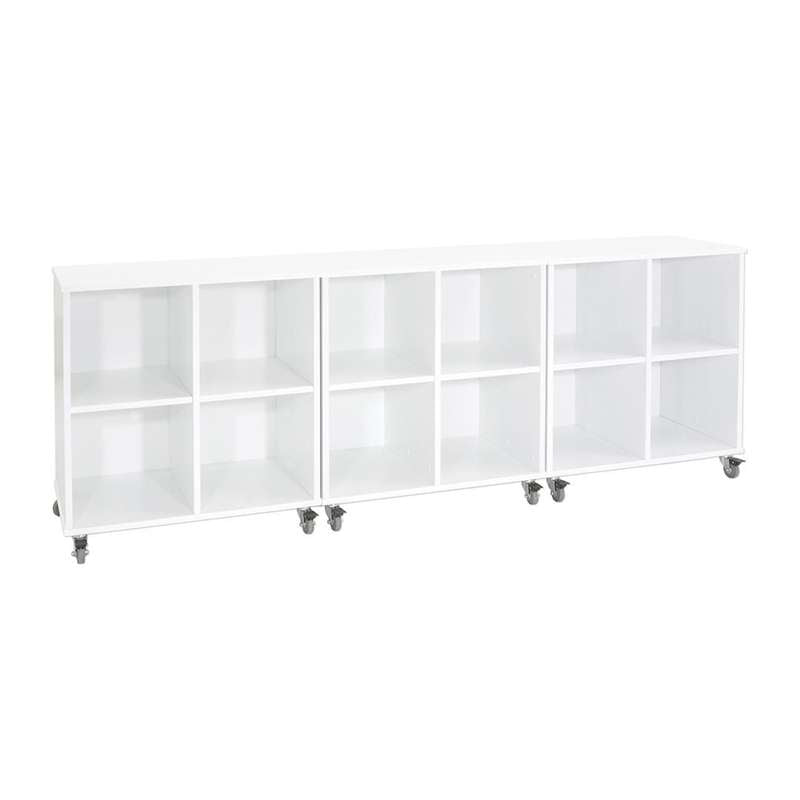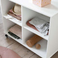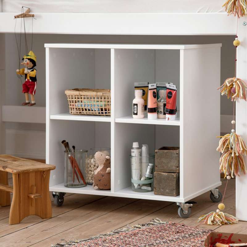 Denne smarte rumdeler på hjul har 4 store rum, som giver gode muligheder for opbevaring af forskellige slags legesager, bøger og klasser.