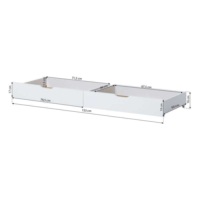 Skuffesæt med to store, praktiske skuffer fra Hoppekids. Skufferne er perfekte til opbevaring af sengetøj eller legesager. Passer under senge med madrasstørrelse 70x160 cm. Skuffen er overfladebehandlet med miljøvenlig, vandbaseret lak.