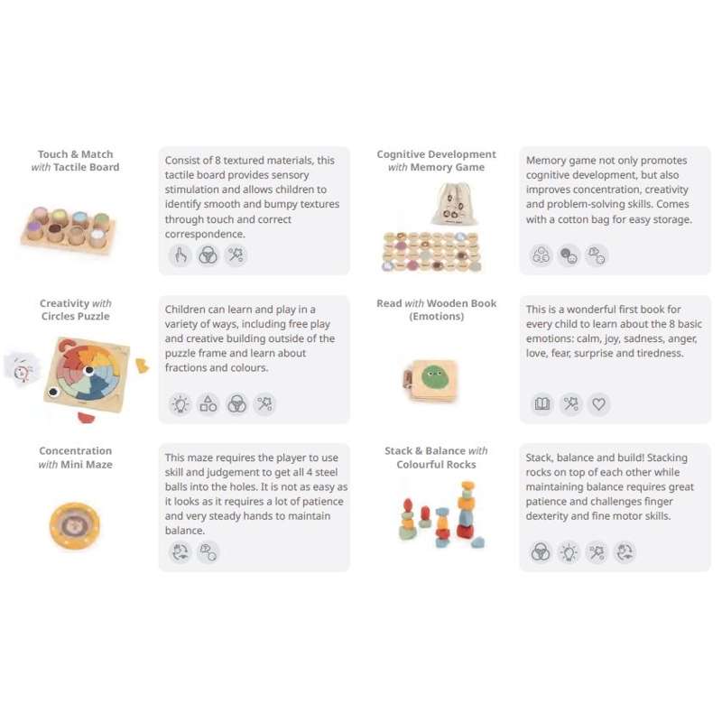 Grow-with-Me-bokse støtter børns læring under vigtige udviklingstrin med legeartikler, der er tilpasset deres alder. De sparer også forældre tid og energi ved at udvælge alderssvarende, sikre og lærerige legetøj fra markedet.