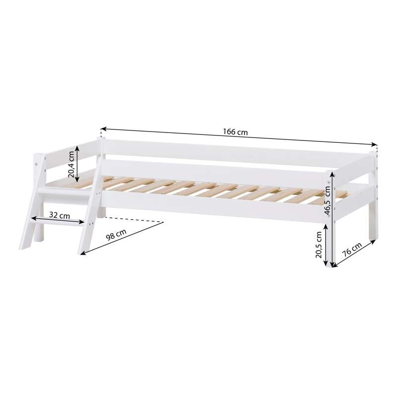 Mål: Seng uden trappe B166xH46,5xD76 cm