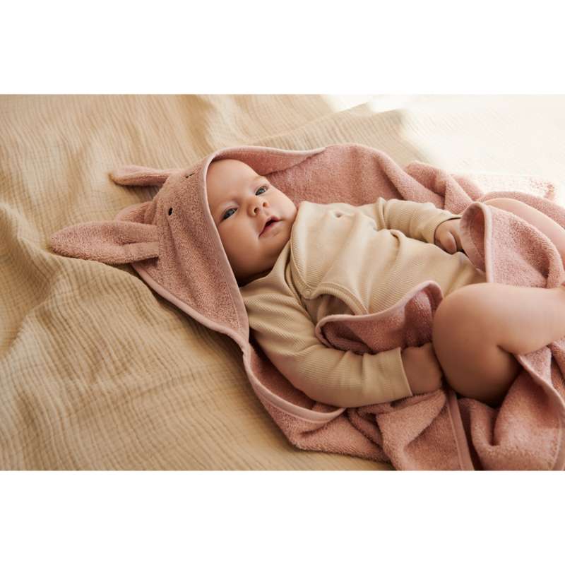 Liewood Albert Badehåndklæde m. Hætte - Baby - Rabbit/Rose