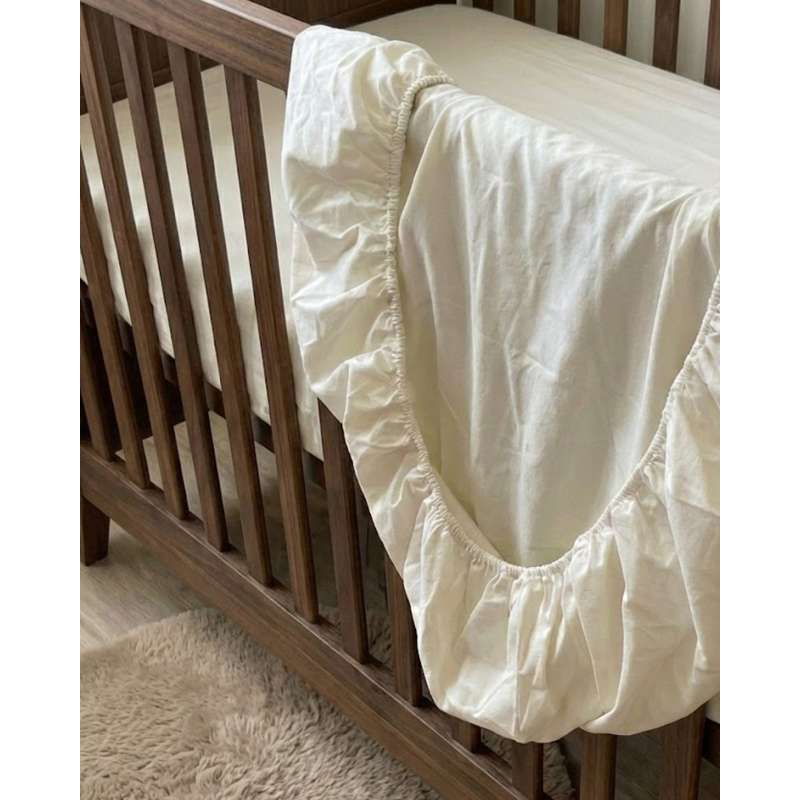 Den knækkede hvide/lyse creme farve giver et roligt og tidløst udtryk, der passer smukt ind i både moderne og klassiske børneværelser. Strækjerseyen gør, at lagnet former sig pænt efter madrassen uden at danne folder.