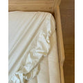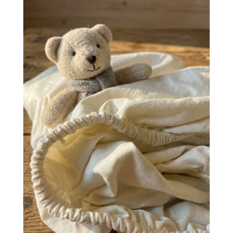 Den knækkede hvide/lyse creme farve giver et let og harmonisk udtryk, der passer ind i mange typer børneværelser. Strækjerseyen gør, at lagnet tilpasser sig madrassen og ligger pænt uden at glide.