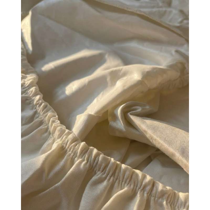 Den vandtætte PU-membran på bagsiden beskytter madrassen mod fugt, samtidig med at lagnet bevarer sin fleksibilitet. Den knækkede hvide/lyse creme farve passer ind i et roligt og tidløst soveværelsesmiljø.