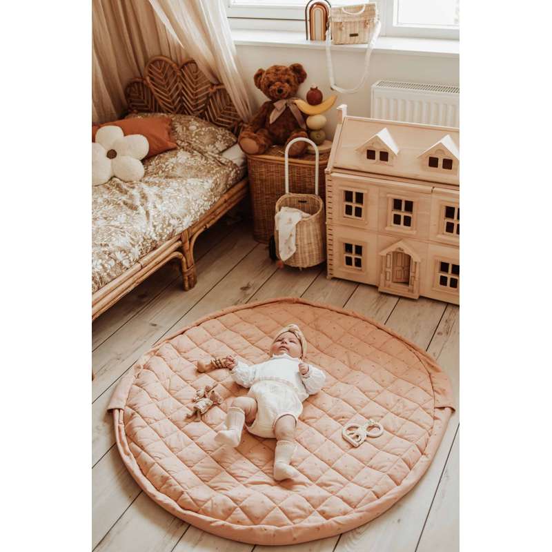 Tæppet kan fyldes med legetøj og bøger, så det også er ideelt til ture i parken eller på besøg hos venner. Et funktionelt og charmerende valg til aktive familier.