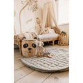 Tæppet kan fyldes med legetøj og bøger, så det også er ideelt til ture i parken eller på besøg hos venner. Et funktionelt og charmerende valg til aktive familier.