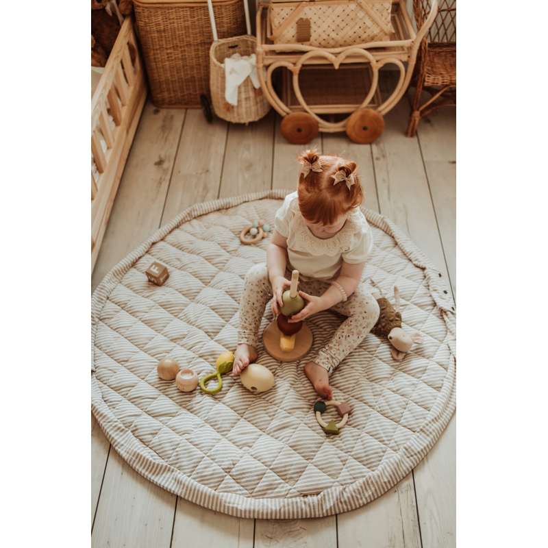 Tæppet kan fyldes med legetøj og bøger, så det også er ideelt til ture i parken eller på besøg hos venner. Et funktionelt og charmerende valg til aktive familier.