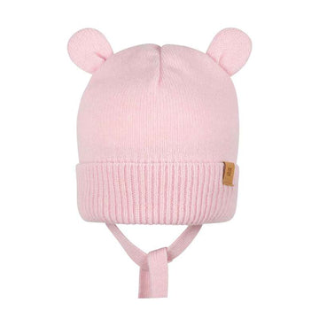 Det søde bjørnedesign suppleres perfekt af ribkanten med opsmøg. To bindebånd sørger for optimal pasform og forhindrer, at huen falder af. En anden lille detalje er mærkatet med det typiske Pure Pure-branding på højre side af kanten.