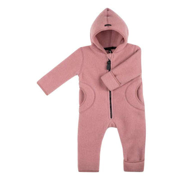 Heldragt med hætte lavet af superblødt fleece i 100% økologisk merinould – GOTS-certificeret. Den optimale ledsager i vintermånederne. Materialet beskytter barnets sarte hud perfekt mod vind og kulde.