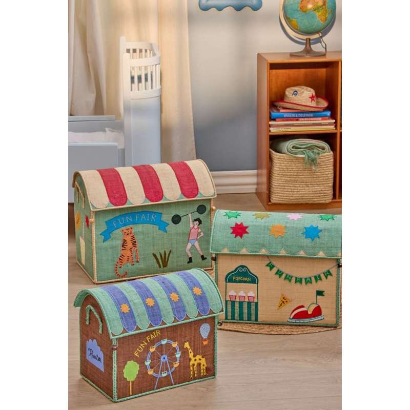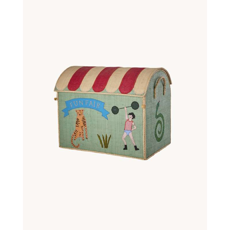 RICE Raffia Opbevaringshus - Fun Fair Theme - Stor - Blå/Grøn