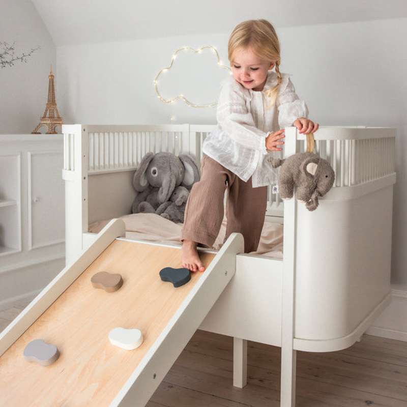 Skab motoriske udfordringer for dit barn ved at montere klatre- og rutsjebanen på Sebra Sengen eller Sebra Klatretrekanten.