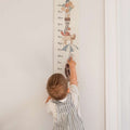 Lad dit barn stå på flade fødder med ryggen op af højdemåleren og markér barnets højde direkte på den med en tusch eller små klistermærker.