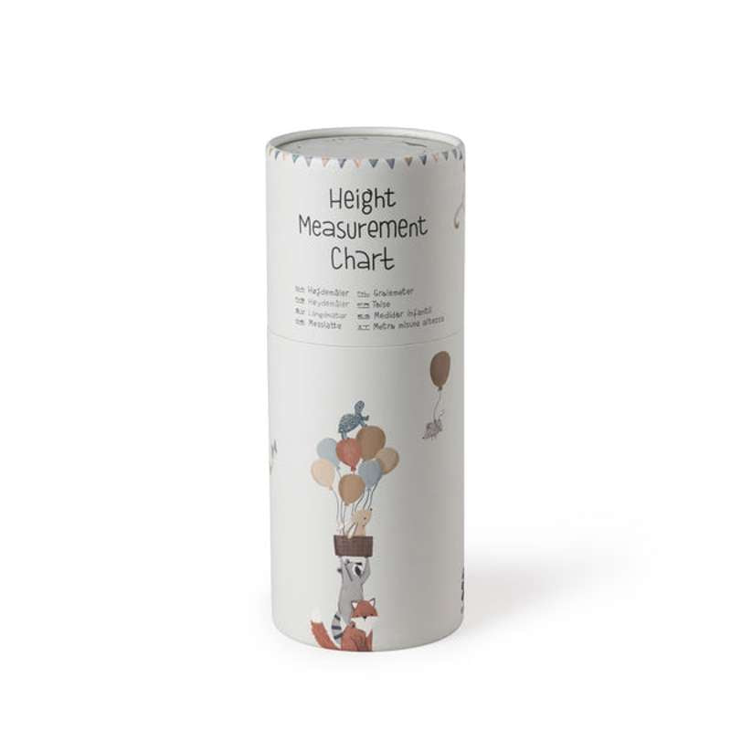 Højdemåleren bliver leveret i en flot cylinderformet papbeholder, der pynter på ethvert gavebord uanset om det er til barselbesøget, barnedåben eller en 1-års fødselsdag.