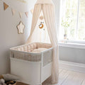 Skab et roligt og afskærmet sovemiljø med sengehimlen, der er designet i Danmark. Den fås i flere smukke farver, der matcher Sebras øvrige tekstiler og fuldender indretningen i dit barns værelse.