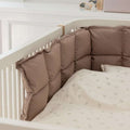 Placér den ved hovedgærdet eller langs den ene side på sengen. De fine bindebånd giver dig mulighed for at binde den fast til tremmesengen både oppe og nede.