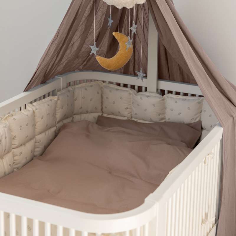 Percale Babysengetøj findes i flere smukke farver og prints, der kan mixes og matches med lagner, sengerande og sengehimler fra Sebra.